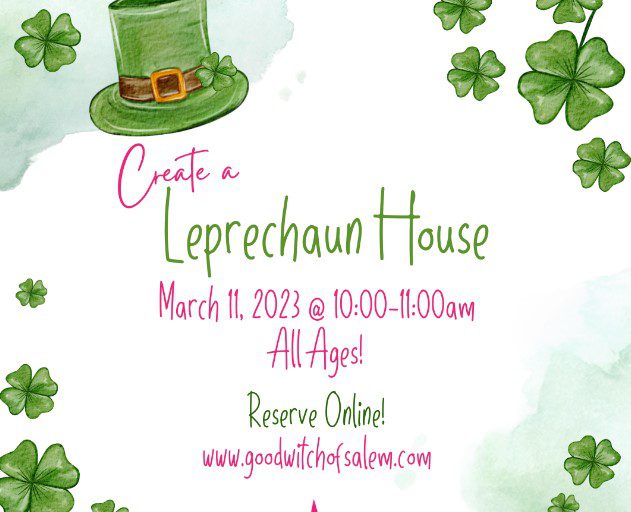 Celebrate the magic of St. Patrick’s Day with The Good Witch of Salem! In this workshop, children will decorate their own leprechaun house.