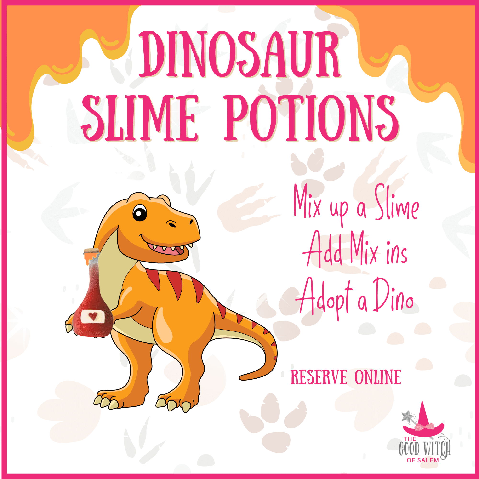 Children will create their own dinosaur themed slime creation. Students will get to take home their slime. Our magical employees will guide children in creating their own slime creations.