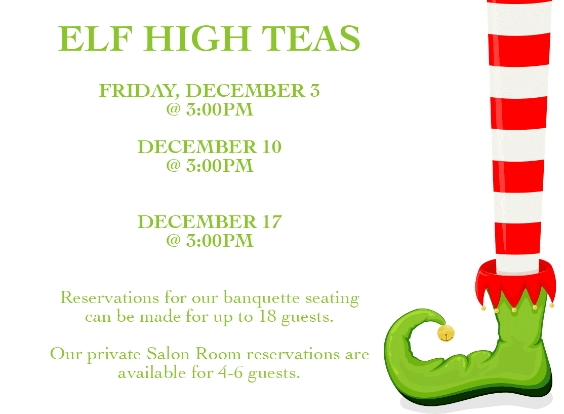 They will be serving our wonderful selection of tea sandwiches, everyone’s favorite lemon scones, gingerbread macarons, peppermint stick macarons, festive holiday madeleines, brownies, and holiday candy!