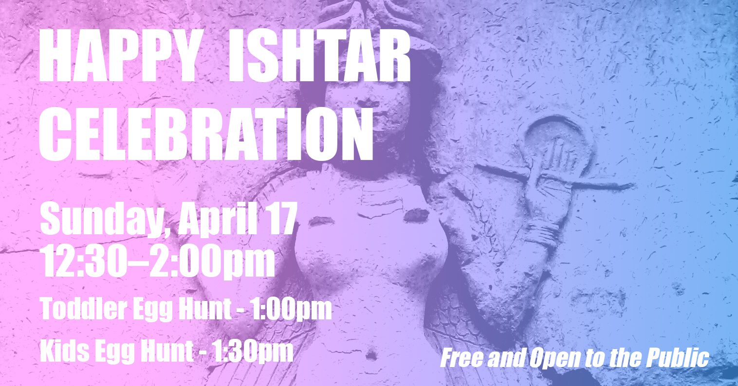 Join us for this All-Ages and Family-Friendly event to celebrate the ancient Mesopotamian goddess of war and fertility, Ishtar. Everyone is welcome to enjoy some snacks and paint some eggs, symbolic of life and rebirth. We will host two Egg Hunts, one for toddlers (0–4yo) and one for kids (5–7yo), with special prizes throughout, and each winner will receive an After School Satan lunchbox and coloring book!