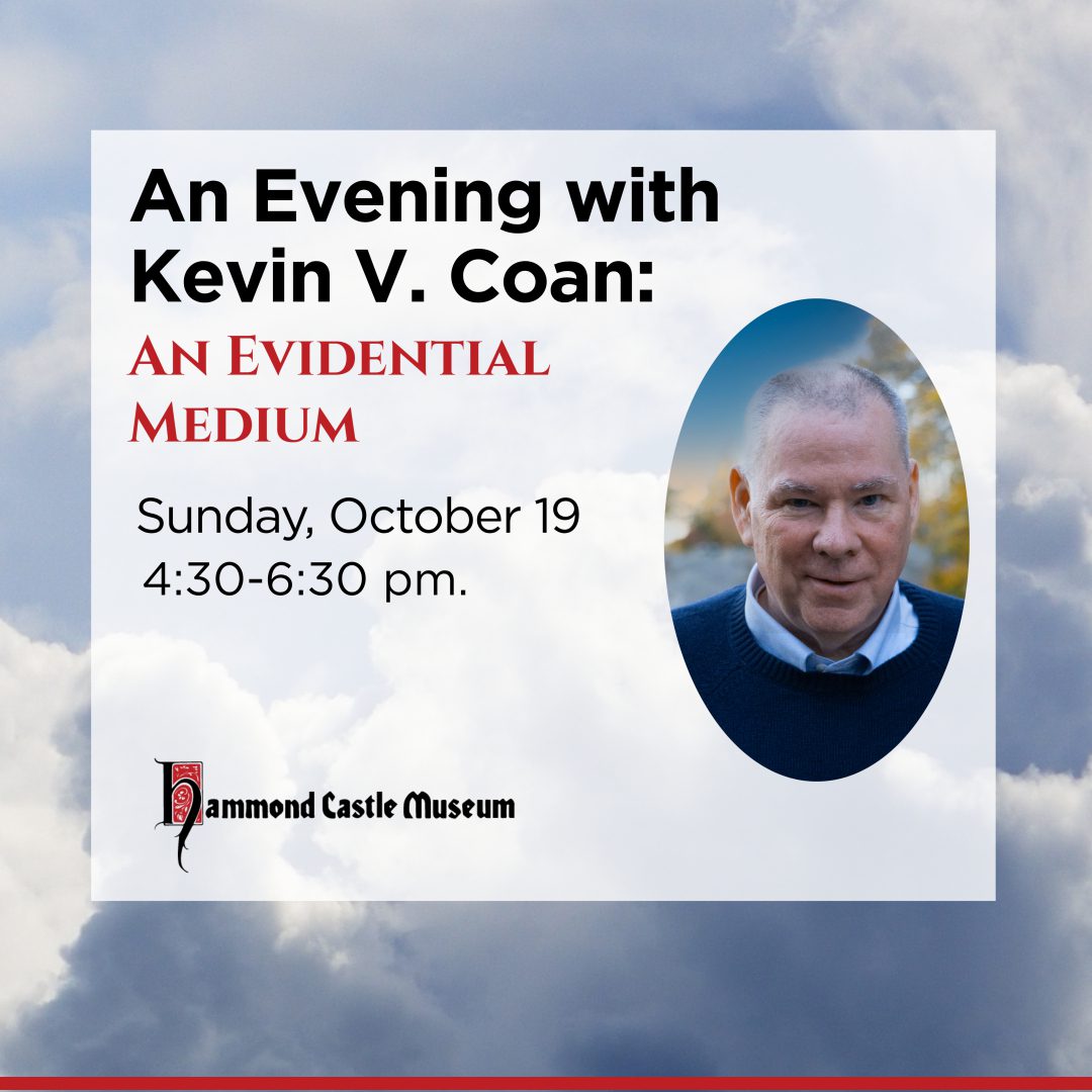 Join us in the candlelit Great Hall at Hammond Castle Museum for an extraordinary group reading with Kevin V. Coan, a highly regarded evidential medium with over 35 years of experience. Kevin’s empathetic approach and down-to-earth demeanor have brought comfort and healing to countless individuals, offering profound messages of connection from loved ones who have crossed over.
