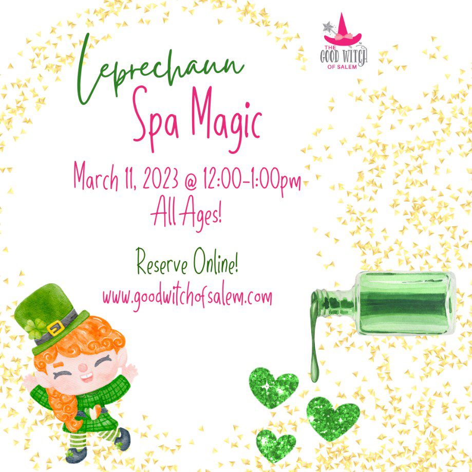 Celebrate the magic of St. Patrick’s Day with The Good Witch of Salem! Join us for some Leprechaun-style pampering and relaxation. Children will create their own potion and receive a sparkly nail manicure, fancy hair extensions, and a touch of glitter.