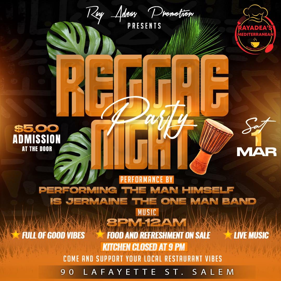 90 Lafayette St. Salem. @ Yours Truly Ray Adea’s Mediterranean and Jamaican Restaurant.