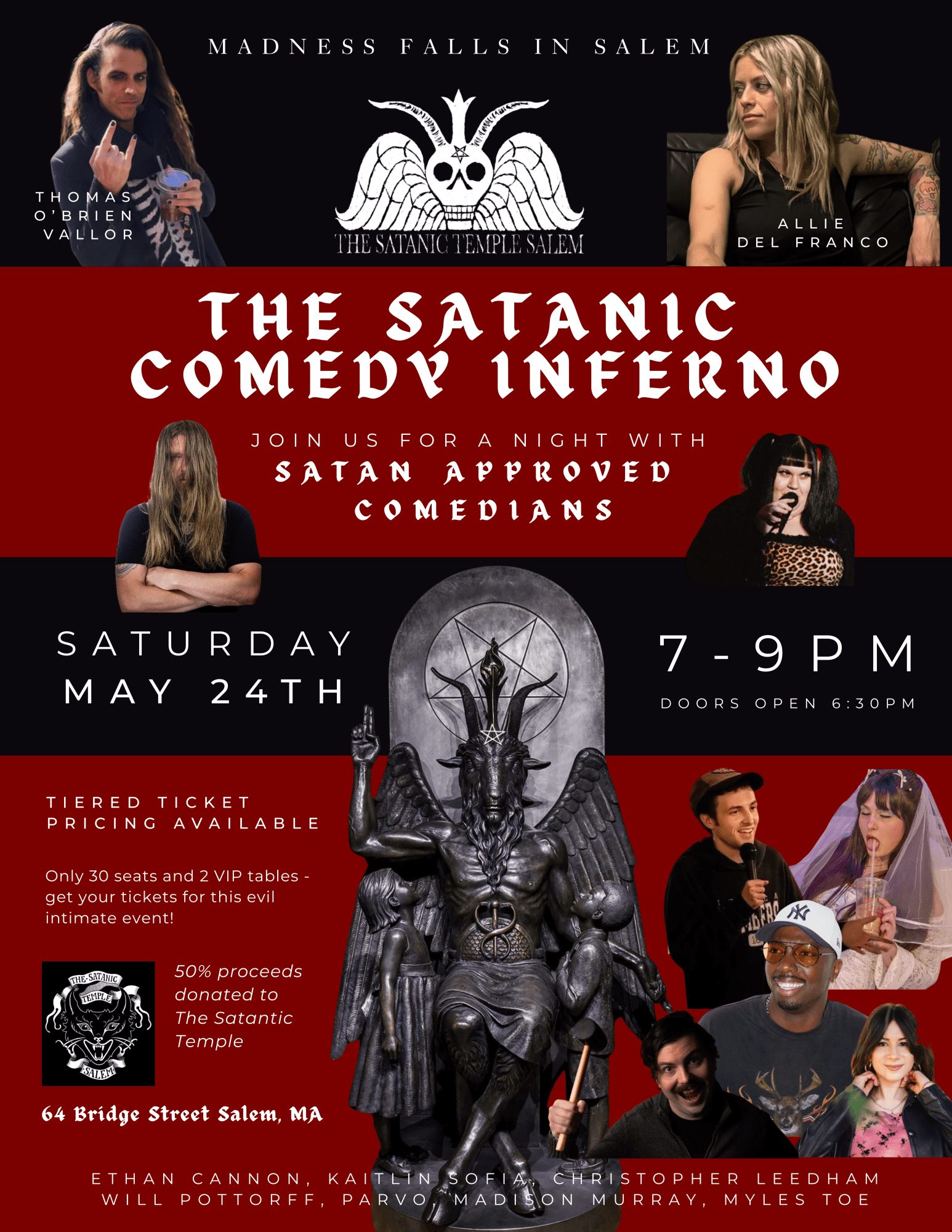 Join the Salem Art Gallery and hosts Allie Del Franco and Thomas Obrien Vallor for an intimate evening of comedy. Enjoy charcuterie and sinful jokes in our gallery’s ambience.
