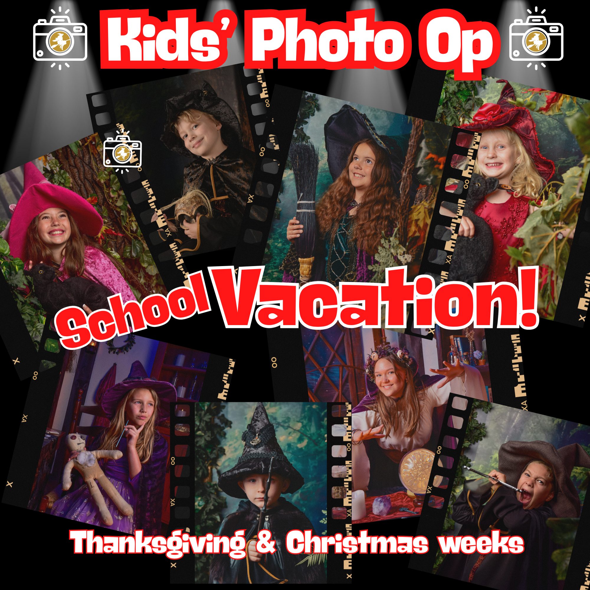 A kid-only witchy portrait session offering four fun styles for a quick, imaginative Salem experience. For a limited time, young visitors can enjoy a brief witchy portrait designed for vacation fun in Salem. Children pick one of four signature styles – Graveyard Magic, Crystal Ball Witchery, 1692 Glamour, or Earth Witch – and step into character with simple costume pieces. The session blends creativity, history, and play, producing a small gallery of expressive images.