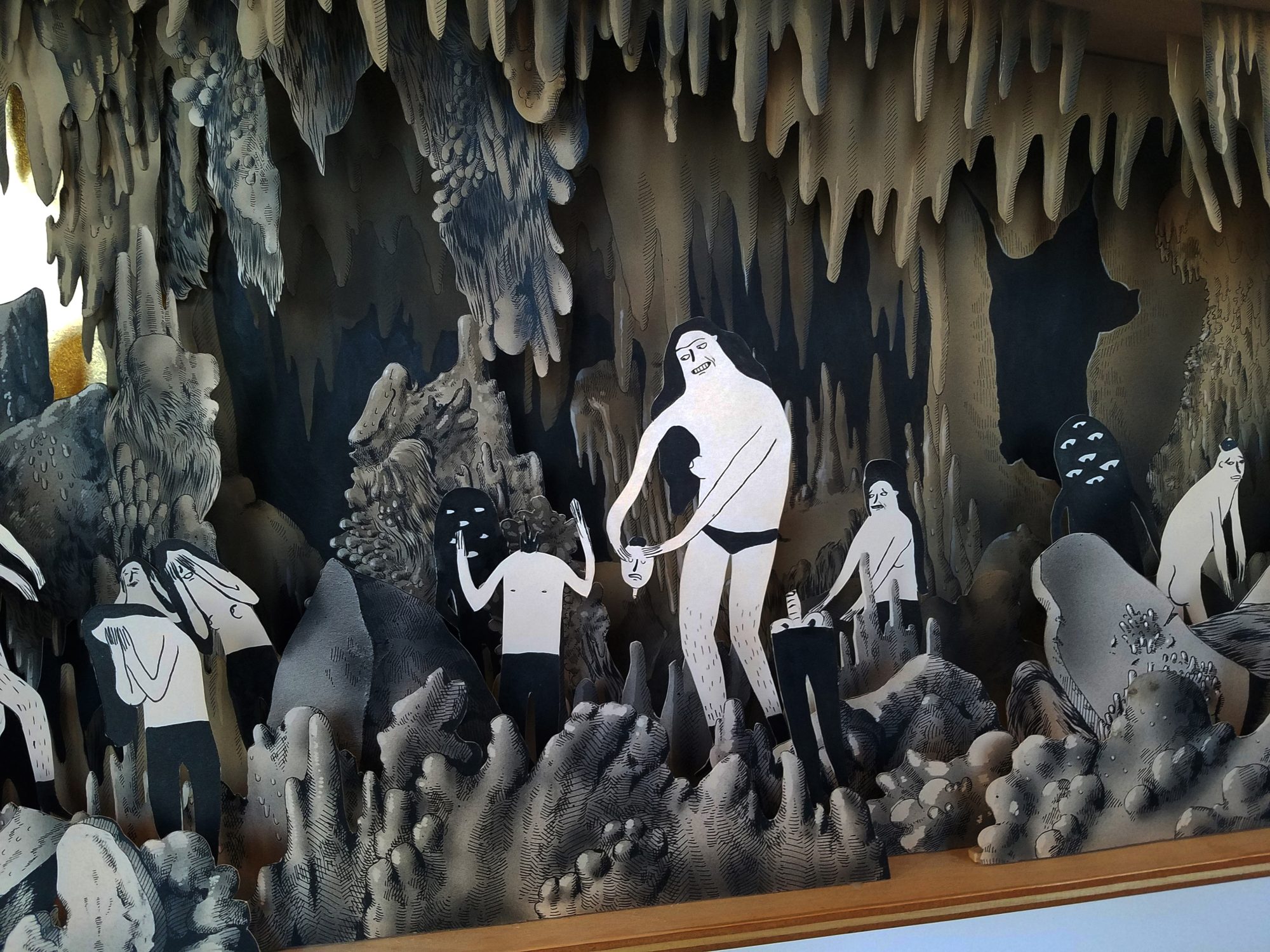 In each exhibition, the sisters attempt to use an entirely new medium; in Sister Season of Sorrow, they are experimenting with clockwork. Each clock is its own environment set around the strictures of the timepiece, but it is also sprawling and blithely unconcerned with being useful. The movements of each clock are attributed to the passing of time but they are swallowed up by the preoccupations of its inhabitants, or entirely ignored as they go about their private miseries.