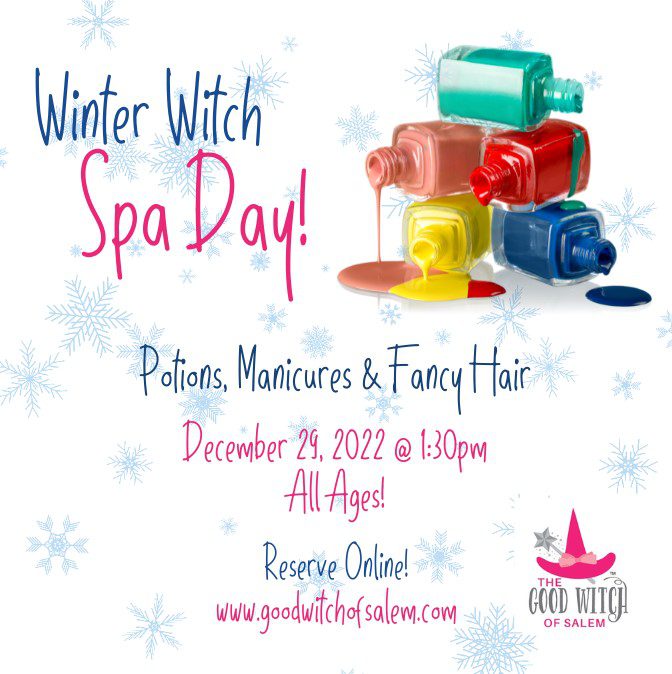 Let’s have a Spa Day! Join us for a little pampering and relaxation with the Good Witch of Salem. Children will create their own potion and receive a sparkly nail manicure, fancy hair extensions, and a touch of glitter. This workshop is limited to 10 children, registration is required. Camps and Workshops are non-refundable at this time.