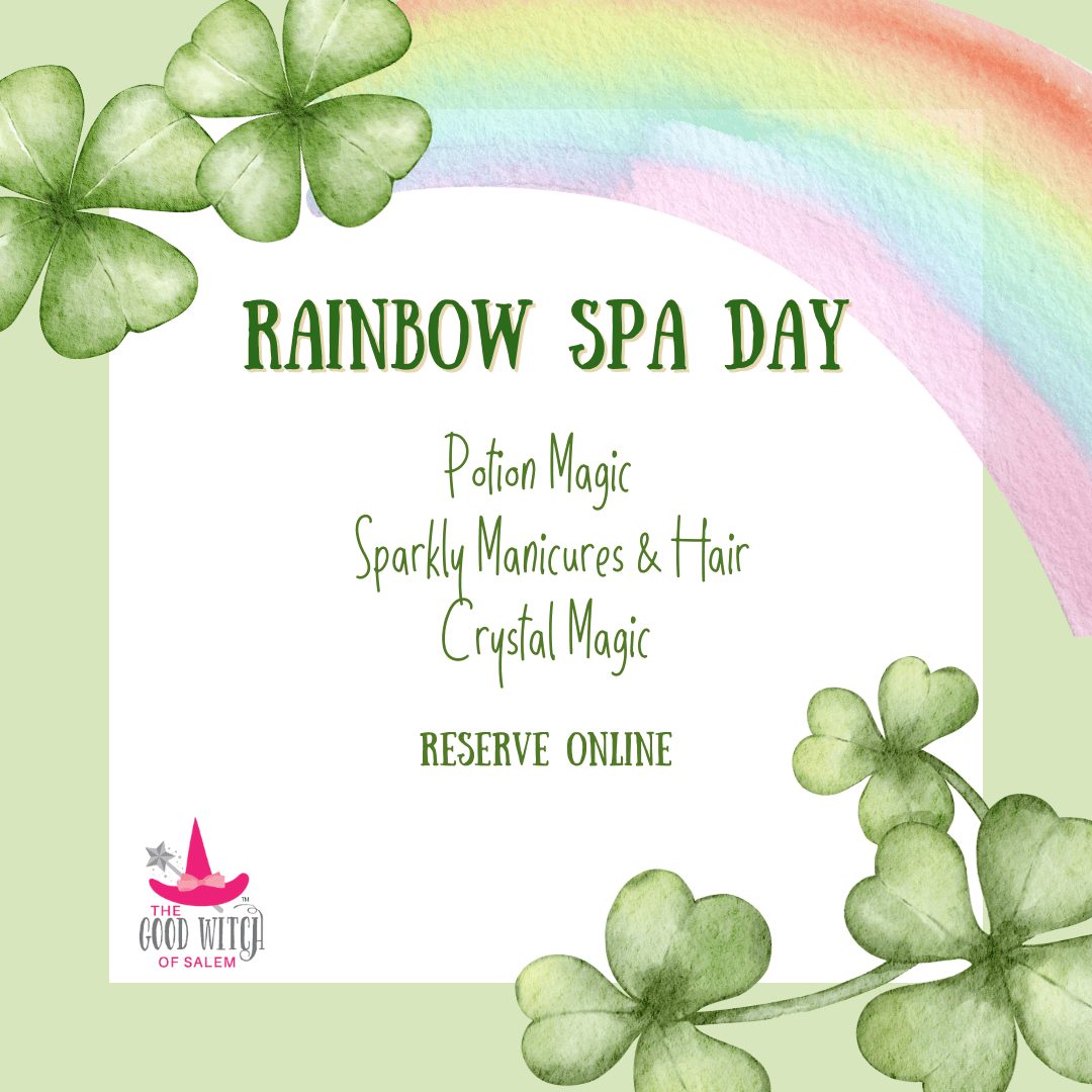 Let’s have a Spa Day! Join us for a little pampering and relaxation with our Witch Apprentices. Children will create their own rainbow potion and receive a sparkly nail manicure, hair magic, and a touch of glitter!