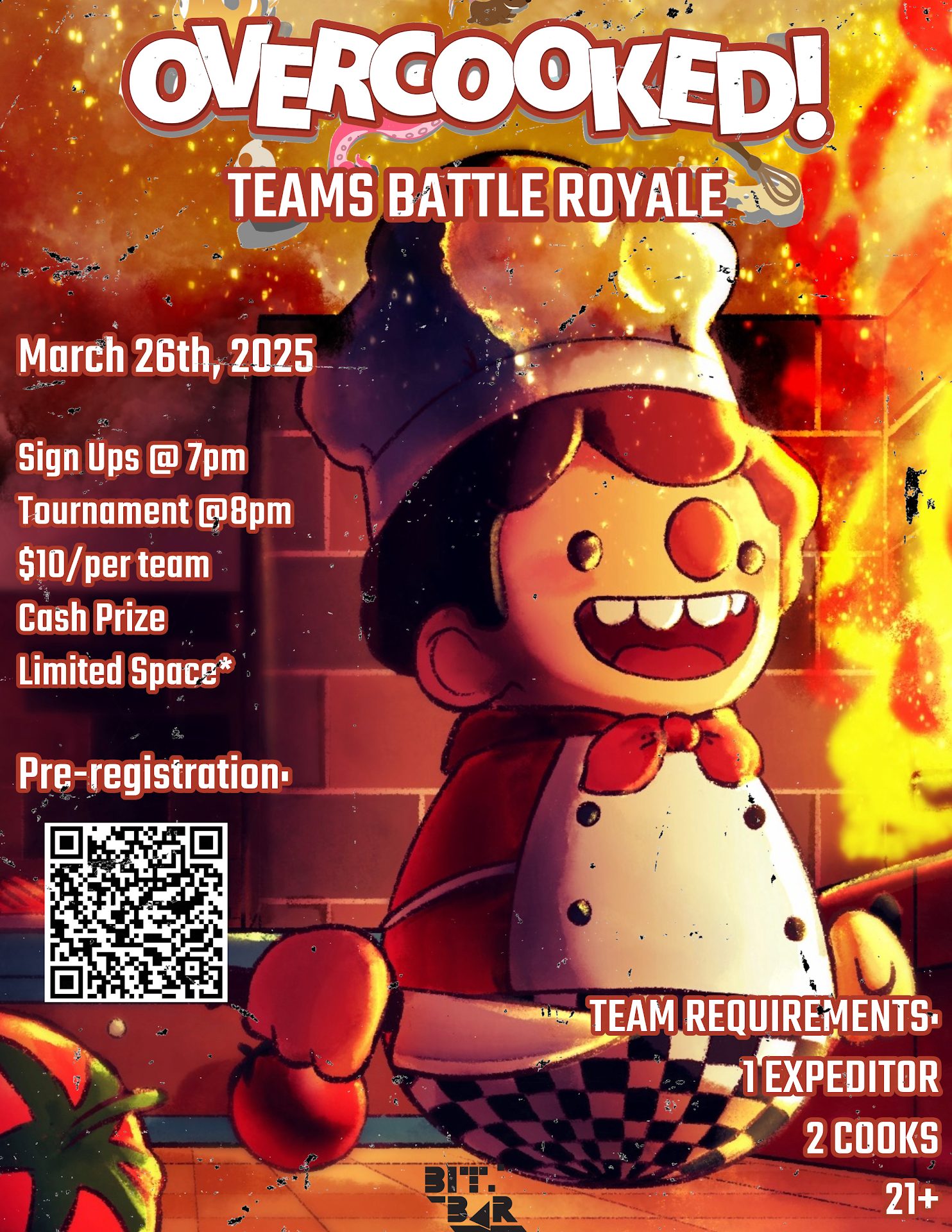Sign Ups @ 7pm, Tournament @ 8pm $10/per team with Cash Prizes for the winners TEAM REQUIREMENTS. 1 EXPEDITOR 2 COOKS 21+