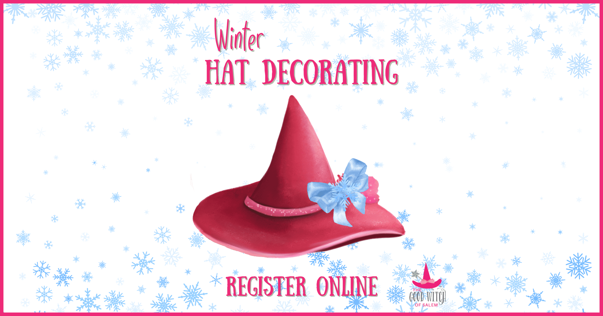 Fly into The Good Witch and Stay for a Spell! Design your own enchanting creation at the Good Witch of Salem’s Hat Decorating Station! Add ribbons, tulle, lace, roses, stickers, and shimmering gems to craft a one-of-a-kind witch hat, then complete your magical masterpiece with an inspiring affirmation card.
