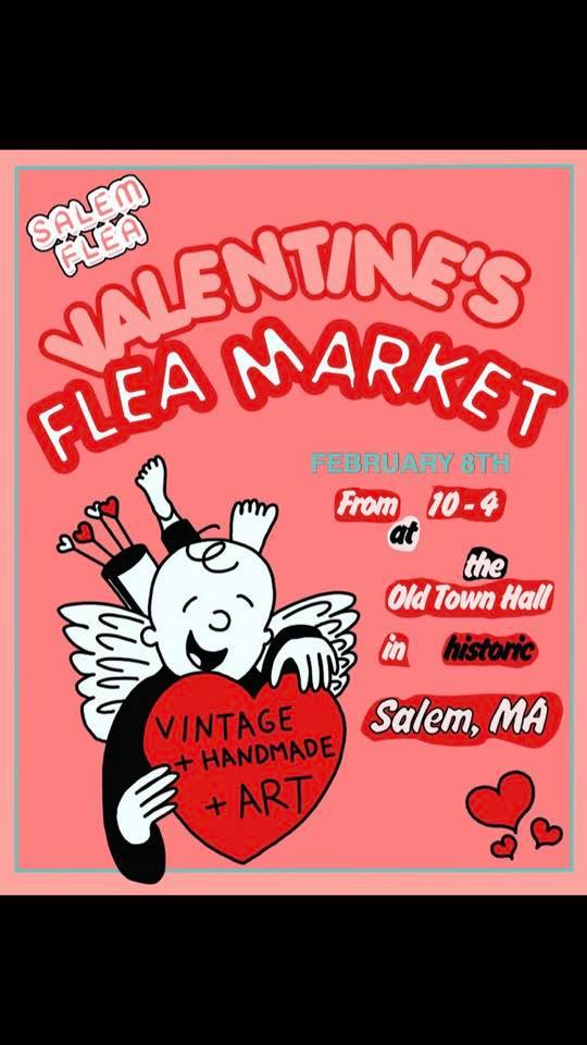 Come check out The Salem Flea’s Valentine’s Day Market! Located inside The Old Town Hall in Derby Square in Salem. 35+ vendors specializing in vintage, handmade, art and everything you need to treat yo self or treat your loved one!
